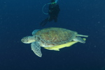 Diving with sea turtles is always enjoyable. Sometimes they are very relaxed while eating, sometimes you pass them while they are swimming. You can't keep up with them when they start swimming.