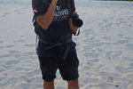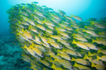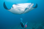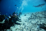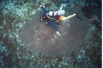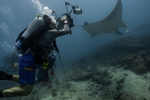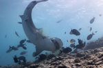Dive guide Gabriel using his fins to "skimboard" along in the current during a safety stop