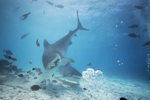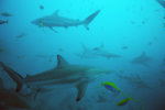 Although the water is not very clear, there are 11 sharks partially or fully visible