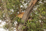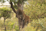 Leopards like to climb trees, this one was just coming down after dragging its kill up there