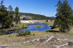 The mother grizzly bear in the meadow with her cubs following her.Ā There were reports the bears were much closer to the trail.