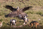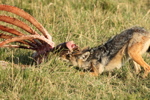 Hyaenas came to join in eating the carcass.Ā We could actually hear the bones crunching as the hyaenas bit into the bones.Ā The jackals did not challenge the hyaenas.