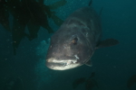 The kelp bass right next to the giant sea bass is about 6 inches.